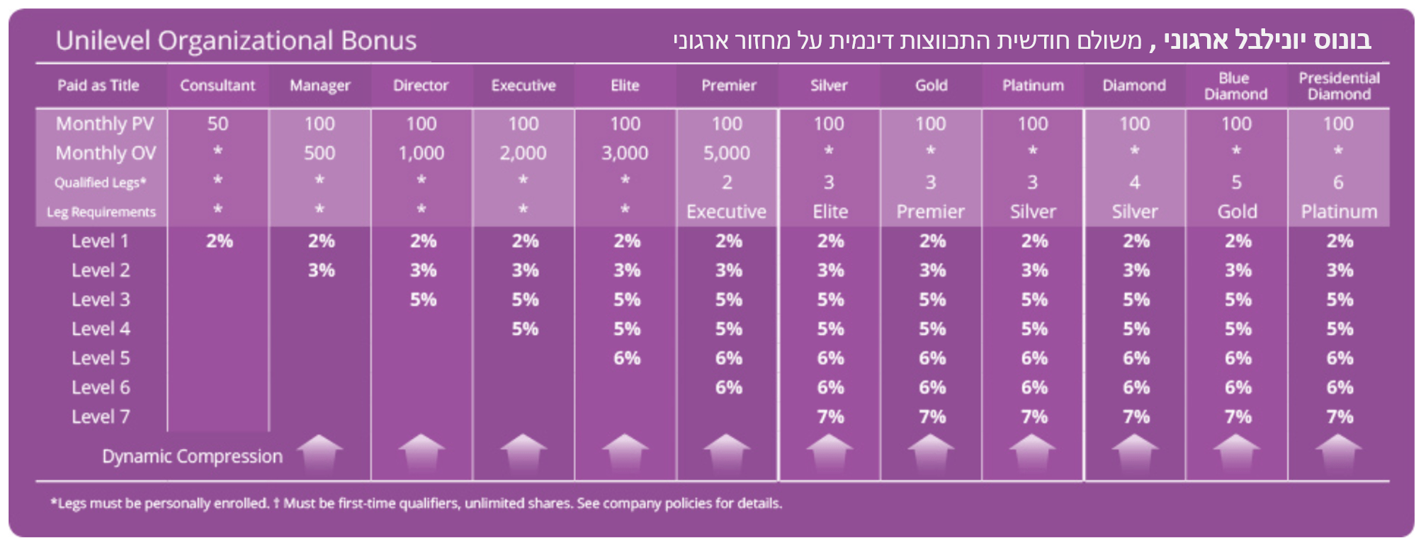 3. בונוס יונילבל/הכנסה פאסיבית UNILEVEL BONUS