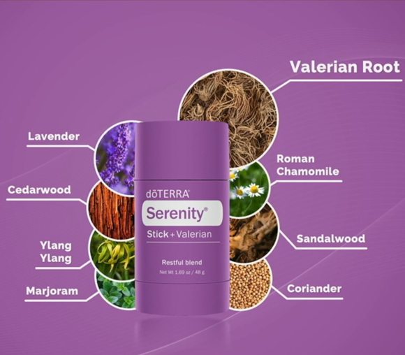 סטיק סרניטי ואלריאן dōTERRA Serenity שלנו לוקח את התמיכה בשינה שלכם לרמה הבאה. הוא משלב את הכוח של תערובת השמנים dōTERRA Serenity עם ולריאן – עשב הידוע בתכונות ההרגעה שלו. הפורמט של המקל מאפשר יישום נוח על הצוואר, הכתפיים והפרקים, תוך תחושת רכות ונעימות על העור ללא תחושת שומניות.