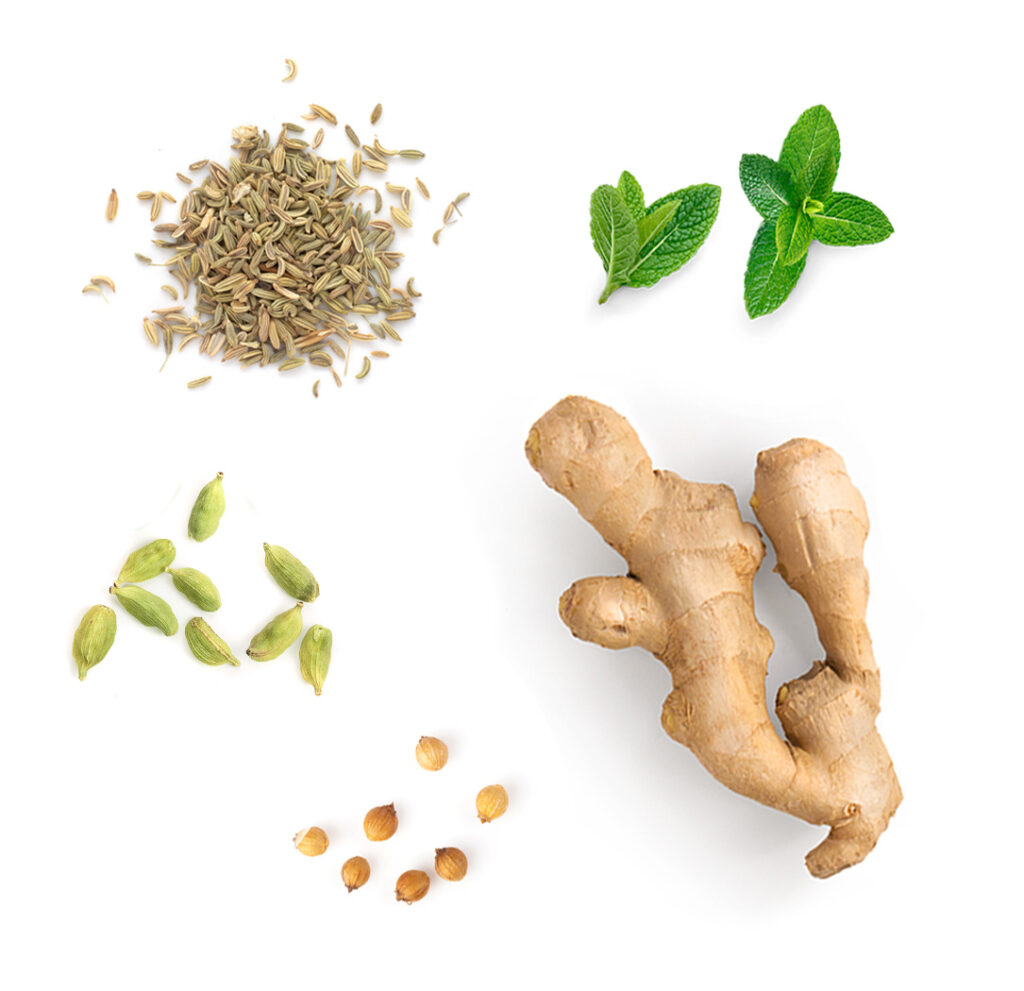 - כוללות ג’ינג’ר, כורכום, זרעי קימל, כוסברה, שומר ועוד.